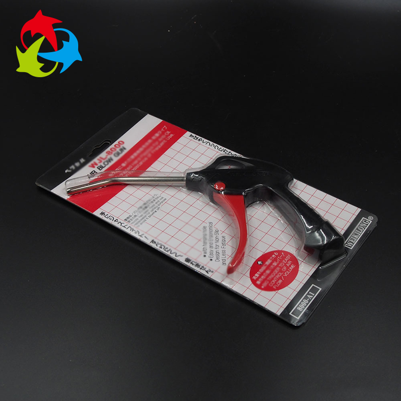 該產品屬於三折邊吸塑罩,是一種插卡形式的包裝,吸塑圍繞點火器而成型,完全貼合,飛機孔可以便於懸掛。