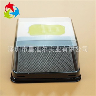 該產品是由吸塑加工廠采用PET為原材料,經過吸塑工藝熱成型後形成的吸塑製品,再由刀模衝切。烘焙吸塑盒蓋子顏色透明,底托為黑色,便於在銷售中的展示,材質環保對環境無汙染,是一款“綠色”產品。烘焙吸塑盒這種設計形式,有便於產品的放入和取出,利於產品的銷售和展示。